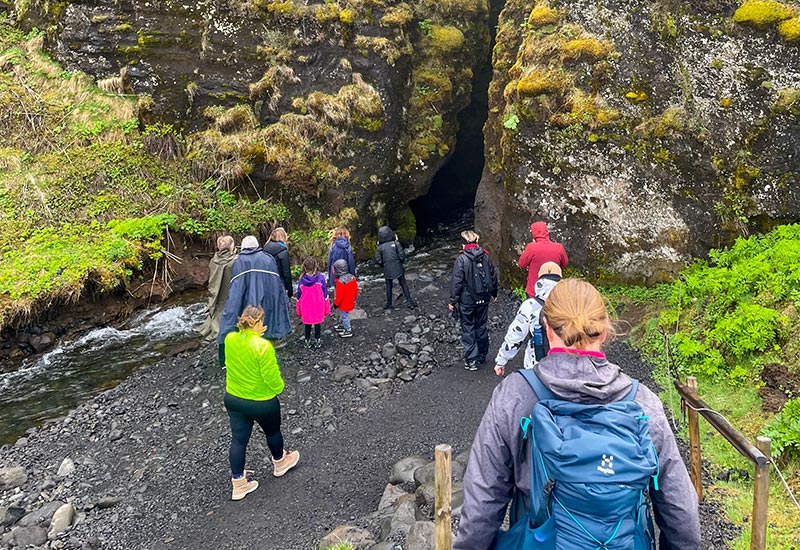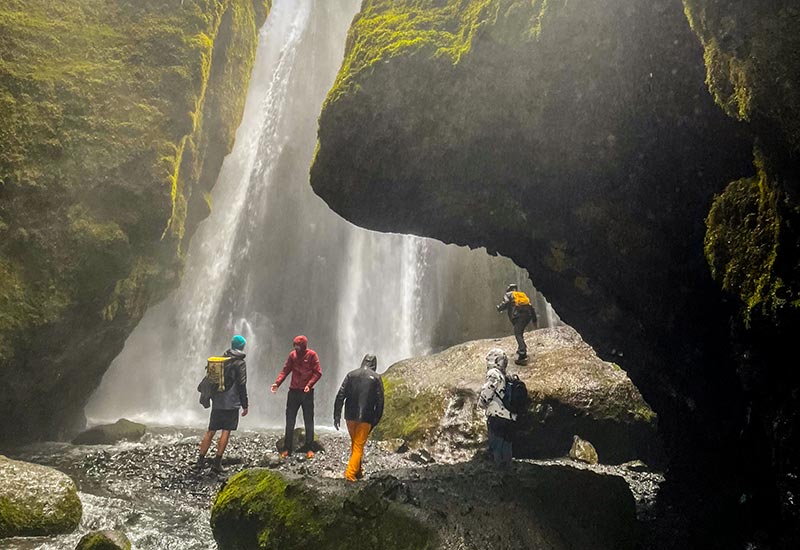 Efter frokosten går turen videre til den sorte sandstrand Reynisfjara, hvor vi kan beundre de imponerende Reynisdrangar-stenformationer og den dramatiske kystlinje. Med sine kraftige bølger og unikke landskab er Reynisfjara et af de mest betagende steder i Island.