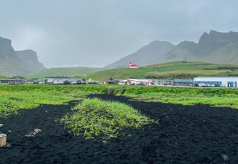 Vi fortsætter til den lille landsby Vík, hvor vi holder en pause og giver tid til at købe frokost. Vík er kendt for sin smukke beliggenhed ved kysten og er et ideelt sted at tage en pause midt på dagen.